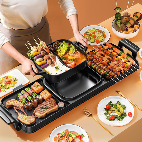 Multifunções Smokeless Hotpot Pot Grelhadores Elétricos Churrasco Grelhadores Elétricos Pan Tudo-em-um Pot